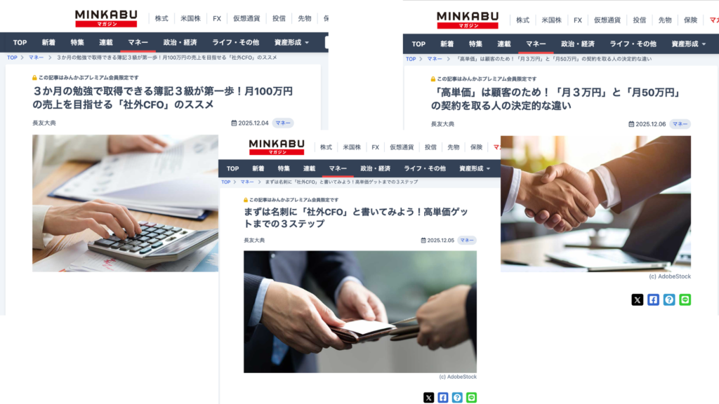 MINKABUにて「社外CFOとは何か?」コラム連載中!